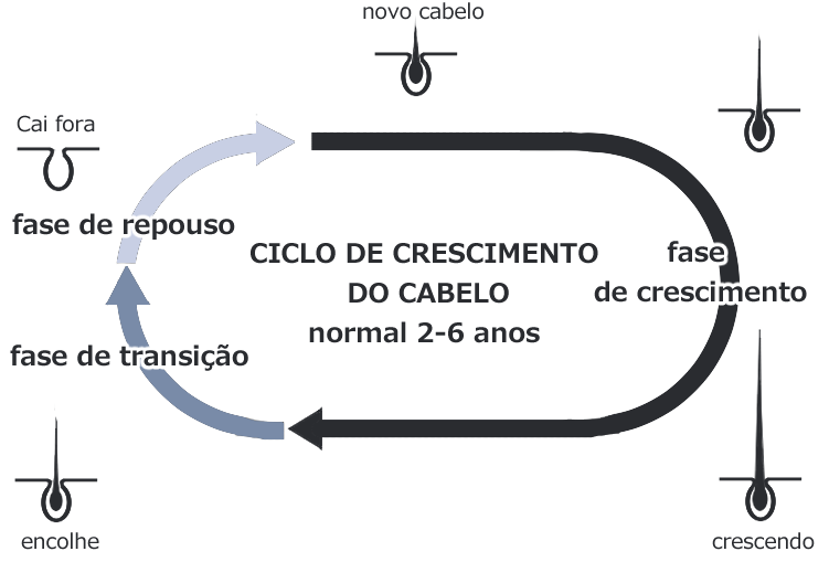 A figura a seguir mostra o ciclo de crescimento do cabelo de uma pessoa saudável.